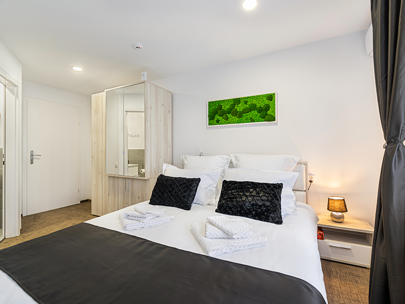 Bada Bing Residence va pune la dispozitie pentru cazare in Brasov 9 camere cochete, cu suprafete cuprinse intre 15 mp si 38 mp. Focusul nostru in decorarea si dotarea camerelor a fost ca oaspetii nostri sa beneficieze de siguranta (prin seifurile puse in dulapuri, acces pe baza de cod), relaxare prin (fotolii de masaj care se regasesc in fiecare camera), entertainment (prin facilitatile multimedia TV Smart, avand acces la ultimile aparitii ale filmelor prin abonament la Netflix, HBO Go si Rakuten), stare de bine prin varietatea kitului de cosmetice, minibar.